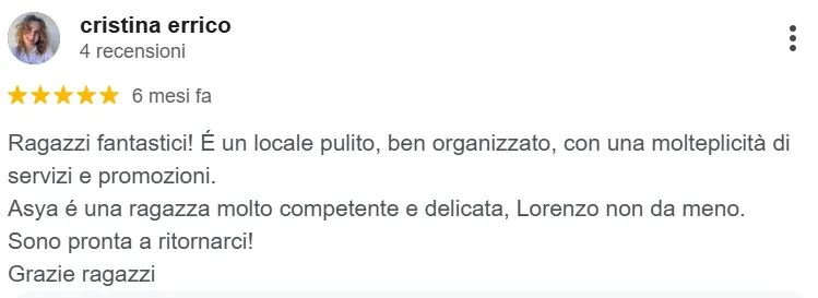 “... locale pulito, ben organizzato, con una molteplicità di servizi e promozioni. Sono pronta a ritornarci”